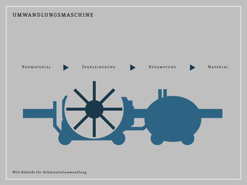 Die Welt-Behörde für Rohmaterialumwandlung beschäftigt sich mit der Umwandlung und der Veredelung der öden und geschmackslosen Naturprodukte in Welt-Kraft-Riegel.
